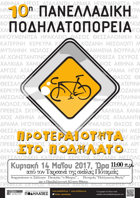 Φέτος ήτανε μια χρονιά ορόσημο για το Διεθνές Ποδηλατικό Διήμερο Θάσου στις 29-30 Απριλίου 2017, καθώς η διοργάνωση έκρινε ότι θα ήτανε σωστότερο, τόσο για λόγους ασφαλείας άλλα και λόγους αισθητικούς, ο μακροβιότερος αγώνας ορεινής ποδηλασίας της χώρας να μην διεξαχθεί, λόγω των καταστροφικών πυρκαγιών του περασμένου Σεπτεμβρίου. Έτσι φέτος διοργανώθηκε από την Περιβαλλοντική Κίνηση Θάσου και την οργανωτική ομάδα του ΜΤΒ THASSOSTEAM με την αρωγή του Δήμου, το Σάββατο 29 Απριλίου, ένας λαϊκός αγώνας ορεινού τρεξίματος12 χιλ. με την ονομασία ΠΕΤΡΙΝΟ ΓΕΦΥΡΙ, με εκκίνηση το Θεολόγο και τερματισμό την ακτή Αγ. Αντωνίου και την Κυριακή 30 Απριλίου ο Διεθνής Ποδηλατικός Γύρος Θάσου για ένατη συνεχή χρονιά. Παρόλα αυτά περισσότεροι από 250 ποδηλάτες και δρομείς βρέθηκαν το τριήμερο της Πρωτομαγιάς στο νησί μας αποδεικνύοντας ότι η Θάσος αποτελεί πλέον τόπο συνάντησης για όλους τους Βαλκάνιους ποδηλάτες και λάτρεις της φύσης γενικότερα.