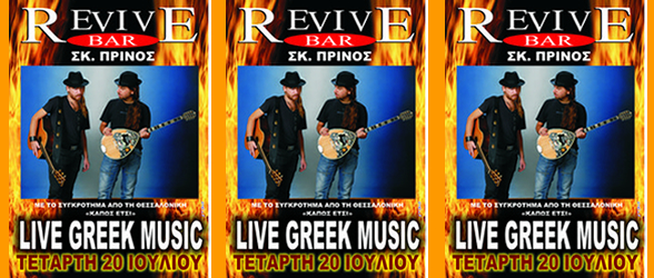 Revive Bar – Τοποθεσία Σκάλα Πρίνος – Ημερομηνία 20-07-2011 – Ωρα 9.30μμ – 02.00πμ – Special Guest: Η “Κάπως Έτσι”