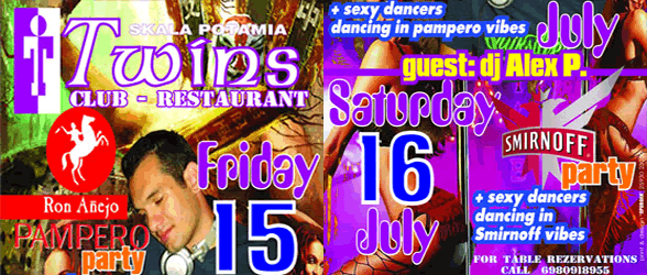 Σας ανακοινώνουμε το καθημερινό πρόγραμμα της καλοκαιρινής περιόδου 2011 του Twins Club στην Ποταμιά της Θάσου.