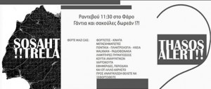 Η ομάδα Thassos Alert διοργανώνει καθαρισμό στο Δασύλιο του Πρίνου. Με την συμμετοχή της Περιβαλλοντικής Κίνησης Θάσου γίνεται μια προσπάθεια για τη συλλογή και την ανακύκλωση ηλεκτρικών συσκευών, χαρτιού, αλουμινίου και όχι μόνο. Αυτή την Κυριακή στις 11:30 στον φάρο του Δασυλίου. Θα χαρούμε με την ανταπόκριση σας σε αυτή την σημαντική προσπάθεια. Περισσότερες πληροφορίες στο 6948828280. Το Θασόραμα στηρίζει αυτή την πρωτοβουλία και χαιρετίζει προσπάθειες τέτοιου είδους.