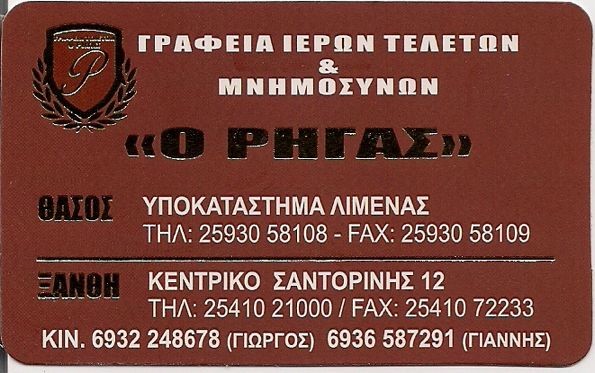 Γραφείο Τελετών «Ο ΡΗΓΑΣ» – Γεώργιος Ρήγας